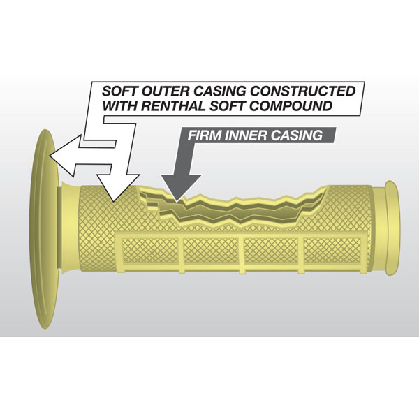 Renthal manopole in gomma a doppia densità, con incavi per filo di sicurezza.